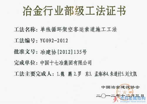 近日,從中國冶金建設協會獲悉,中國十七冶集團榮獲5項部級工法。 獲得2012年度冶金行業部級工法的有:冶金工程技術公司的《單線循環架空客運索道施工工法》和《插拔式高壓終端制作工法》、城建工程技術公司的《長螺旋鉆干法成孔抗浮錨樁施工工法》和《土釘墻基坑支護加筋水泥土錨樁施工工法》,風力與太陽能發電工程技術公司的《2MW海上風力發電機安裝工法》。 這5項部級工法的成功獲得,充分體現了公司對科技創新工作的高度重視、廣大技術人員過硬的專業技術水平以及十七冶人為推進公司高質量可持續發展的持續創新精神。 |