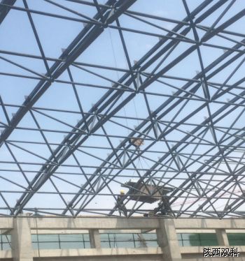 吊裝前準備工作就緒后,首先進行試吊,吊起高度為 100 一 200mm時停吊,檢查索具牢固性和吊車穩定性。經確認無誤后方可指揮吊車緩漫上升,當梁底高于牛腿面 150~200mm時,調整梁底與牛腿面兩基準線達到準確位置,指揮吊車下降就位,將吊車梁吊垂直后放置牛腿面上,臨時將吊車梁加固,達到安全方可摘勾。吊車梁吊裝采用單片吊裝,起吊前按要求配好調整板、螺栓并在兩端拉攬風繩。吊裝就位后應及時與牛腿螺栓連接,并將梁上緣與柱之間連接板連接,用水平儀和帶線調正,符合規范后將螺絲擰緊。