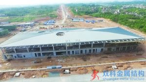 三清山機(jī)場(chǎng)項(xiàng)目建設(shè)現(xiàn)場(chǎng)指揮部總指揮張劍翔告訴記者:“航站樓主體工程于2014年2月24日正式開工,目前鋼筋混凝土主體工程、墻體砌筑、金屬屋面鋪設(shè)等已經(jīng)完成。玻璃幕墻工程已完成一層全部抗風(fēng)柱的吊裝、焊接和除銹,正在安裝玻璃幕墻的鋼結(jié)構(gòu)框架。”