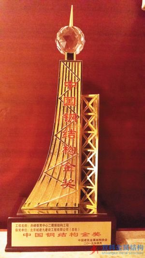 中國建筑工程鋼結(jié)構(gòu)金獎(jiǎng),簡稱“鋼結(jié)構(gòu)金獎(jiǎng)”是中國建筑鋼結(jié)構(gòu)行業(yè)工程質(zhì)量的最高榮譽(yù)獎(jiǎng)(國家優(yōu)質(zhì)工程)。由中國建筑金屬結(jié)構(gòu)協(xié)會建筑鋼結(jié)構(gòu)委員會組織實(shí)施,每年評選一次。早在2014年11月20日,中國建筑金屬結(jié)構(gòu)協(xié)會建筑鋼結(jié)構(gòu)委員會組織成立的評審委員會,就對赤峰體育中心鋼結(jié)構(gòu)工程管理資料、現(xiàn)場質(zhì)量進(jìn)行了核查,專家組對現(xiàn)場管理、實(shí)體質(zhì)量給予了很高的評價(jià),因此本次順利被評為2014年度中國鋼結(jié)構(gòu)金獎(jiǎng)工程。